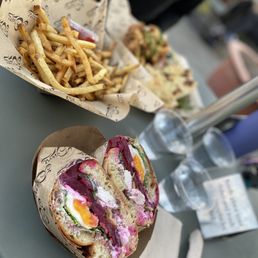 I ordered their Falafel plate via DoorDash one night and absolutely became obsessed with their mint tea. The falafel plate was also delicious so I decided I had to check this place out in person. I was really curious to try their pickled beet sandwich as I also get a pickled beet and hard boiled egg sandwich at Cookbook in my neighborhood. The sandwich was beautifully delicious. I'm not someone who gravitates towards beets unless they are in a juice but these picked beet and egg combinations are killer. I will definitely be back for this sandwich.